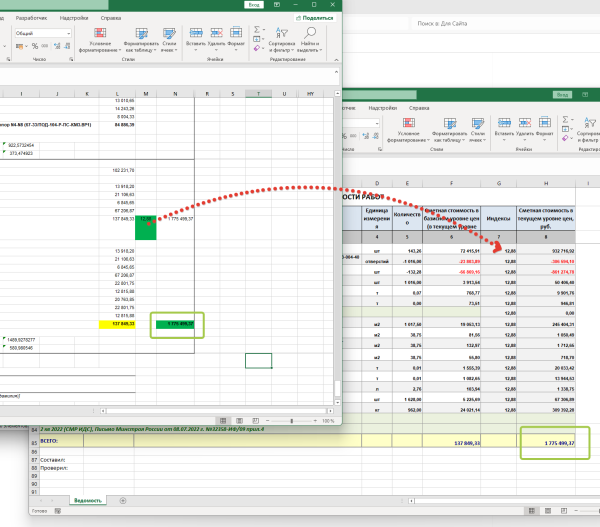 Сравнивает итоговые суммы с исходными данными сметы и предупреждает о расхождениях.