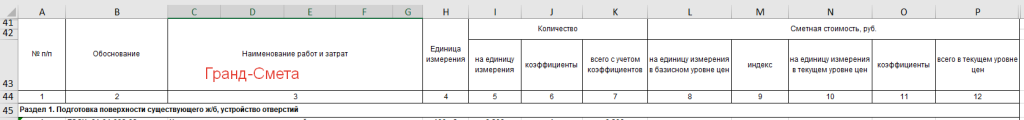 - Точно совместим (протестирован) на сметах программы ГРАНД-Смета, версия 2024.1, ПК РИК (вер. 1.3.250710), Smeta.RU версия 11», вот с такими столбцами и заголовками шапки сметы: